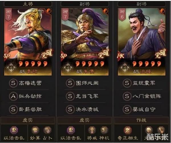 整个队伍控制都是相当稳定,袁绍和朱儁带以治击乱收益很高;沮授自带战法的机制,带奇正相生也是固定的,兵书上面基本上争议不大。