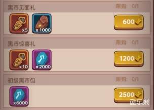 4、黑市见面礼包、黑市惊喜礼包、初级黑市礼包