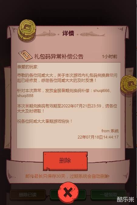 官方补偿礼包码来了,小伙伴们快去使用!不嫖白不嫖!礼包码:shuqi666、shuqi888