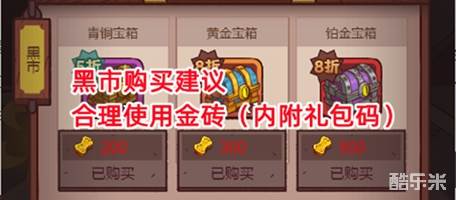 5000金砖换来800积分的宝箱,可以说是江湖黑市中最值得购买的资源,必买。