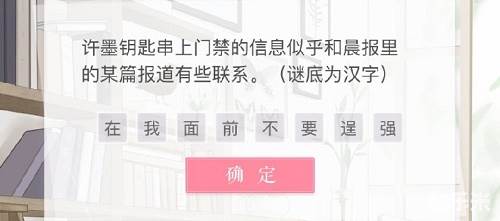 2、许墨钥匙串上门禁的信息似乎和晨报里的某篇报道有些联系。(谜底为汉字)