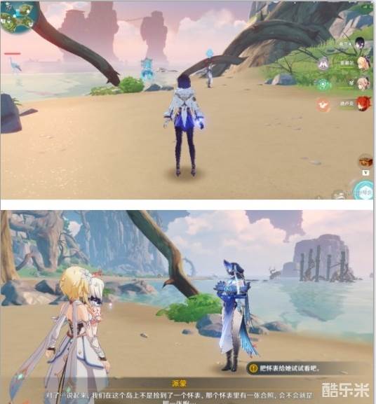 先与众人对话,再触碰在中心小岛的影像海螺,再与众人对话后,得知需要三个错位的海螺(在之前的任务中大家都能找到),错位海螺的位置如下图,如果我没记错的话。(如果我记错了,大家记得重新拿起来再次排列组合即可)