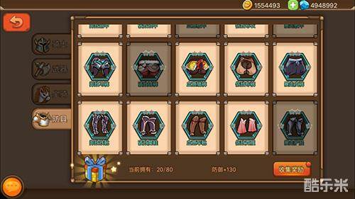 至于防具的搭配,建议玩家打开“图鉴”中的防具栏,查看所有防具。可以看到每一种品质的防具都有五套,分别侧重提高武将的暴击、暴伤、吸血、破击、和格挡属性。无疑格挡属性套装适合肉盾武将装备,其余四种属性套装则适合其他武将。