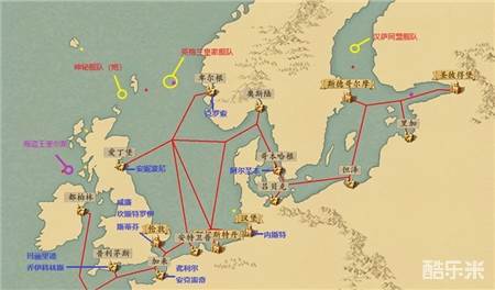 苏格兰风笛(紫)——都柏林正北远海冰岛的右下角。