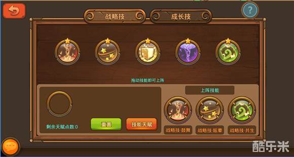 领主技能有战略技和成长技两种。战略技属于改变战局的技能,效果比较强大,比如眩晕,无敌,增加怒气等等,成长技属于增加骑士属性,比如回复生命,提高防御等等。成长技的升级需要消耗科技点,而战略技需要消耗天赋点,天赋点在领主50级后,每级获得一点天赋点。多运用领主技能,往往可以以弱胜强。