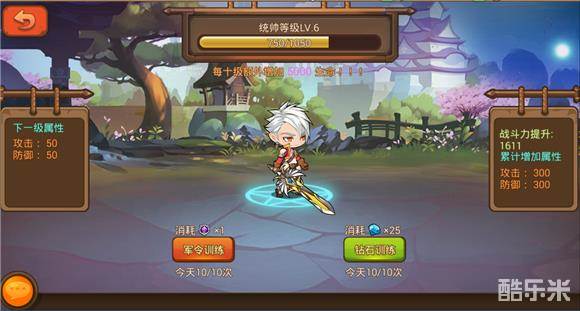 领主培养可以通过军令和钻石来对领主的统帅等级进行升级,每天各有十次的上限。军令训练有概率暴击获得更多经验,钻石训练必定暴击获得额外经验。领主的统帅等级越高,增加属性越多,这些属性会附加到每个骑士上,可以快速提高整体战斗力。
