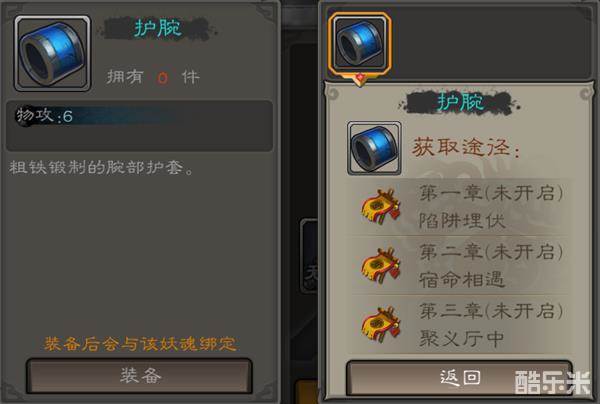 装备是妖魂突破的刚需品,而游戏中采用了非常人性化的设置,清晰明了的告诉大家装备会在哪里掉落,并直接引导到相应的关卡当中: