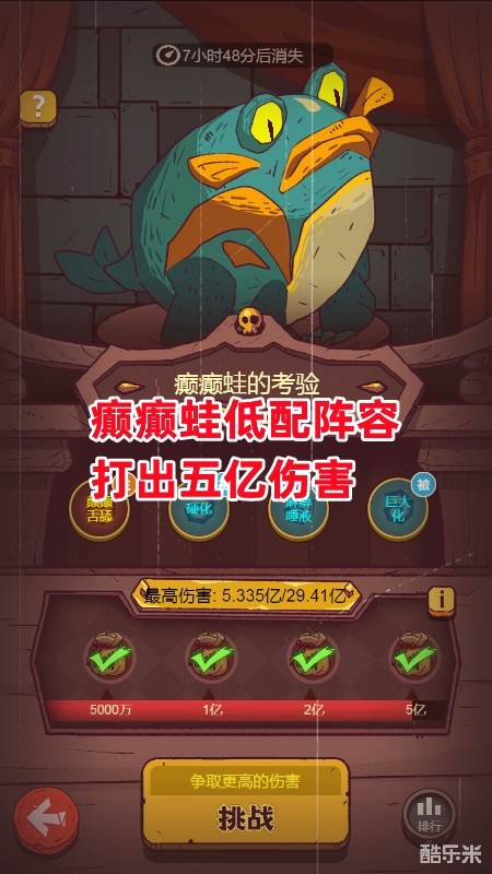《咸鱼之王》癫癫蛙低配阵容打出五亿伤害