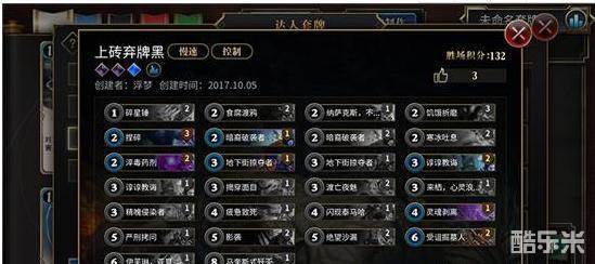 套牌码:l8x6eEsWURhnEmUUyhT7EXUUChK7GxsXHxKrFK8UsxQrFDsU 如果要使用这副套牌,请先将套牌码复制到剪贴板,然后在“达人套牌”里点击“使用套牌码”进行粘贴。