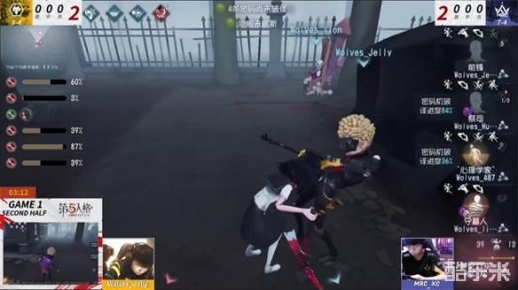 第三天,Wolves vs MRC第一局下半局,前锋开门战撞一刀斩女巫,废闪现横空四出:Wolves_Lion守墓人开局被追击,进祭司大洞后下铲挡刀,后Wolves_Huan祭司接应秒驱信徒,Wolves_487心理学家紧接着移情,极限恢复守墓人状态,断掉梦之女巫的大节奏。Wolves_Lion守墓人送寄生信徒后,Wolves_Jelly的前锋撞晕原生信徒的狗,梦之女巫技能真空,单原生信徒无法击倒求生者,后Wolves_Jelly的前锋螺旋球撞晕原生信徒无伤救下守墓人。之后求生者方选择让前锋硬吃寄生信徒保祭司满血救下人进行保人,逼出梦之女巫底牌切闪现,电机压好。开门战,梦之女巫操控前锋的寄生信徒想要闪现留住守墓人,Wolves_Jelly的前锋秒拉球将其撞晕,保活守墓人同时自身出门,信徒消失,祭司趁此时机冲大门完成四出。