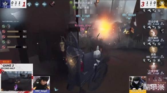 第三天,成都GG vs Gr,第三局下半局的决胜局,开局GG_18的野人干扰监管者耳鸣,红夫人丢失追击节奏。红夫人凭借淬火抬镜追击邮差,GG_kucao的邮差灵巧走位骗空三刀,放狗咬住转镜的红夫人后,拉开远距离不给闪现身位,又消耗两个镜像。牛仔二救邮差被远程镜像拦截,心理学家临时移情远处的野人,此时补位本来不及救人,但牛仔及时摸椅子扯血线被震慑后野人秒接力极限救下邮差。此时点击还剩70%,GG_18的野人扛了镜像一刀后上猪。邮差逼出闪现后被击倒,半状态野人撞救下邮差,求生者方选择在镜子冷却期间直接亮机。GG_445的牛仔极限距离勾中红夫人反跳,废掉空地平行镜像并拉开超远身距,队友默契出门,牛仔直接利用红夫人抬手时间强行冲地窖,完成四出终结比赛。