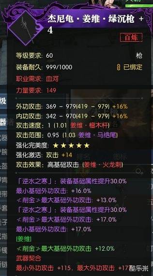 枪上还有极小概率出现稀有词条,例如“削金”,它能提升12%的最大基础外功,这就是极品稀有词条。