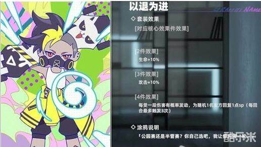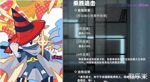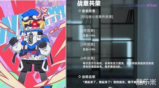 战意共荣:每次友方行动后,自身攻击力提高,持续到自身 释放技能或受到伤害后结束,最高叠加6层。这个套装三保 一单C (单输出)队也能用。