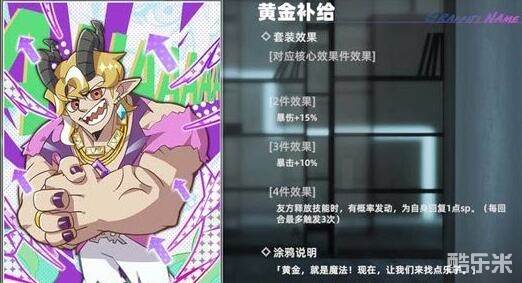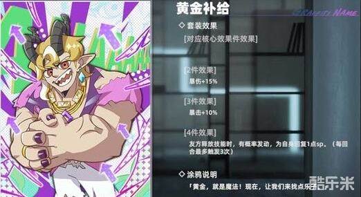 黄金补给:友方释放技能时,有概率发动,为自己回复1点sp每回合最多触发3次