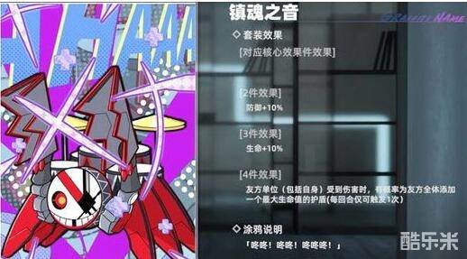 镇魂之音:友方单位且包括自身受到伤害时,有概率为友方全体添加一个最大生命值的护盾,每回合仅可触发1次