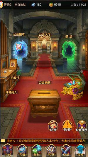公会等级越高解锁的功能越多,今天我们只讲公会副本、大厅和圣坛。