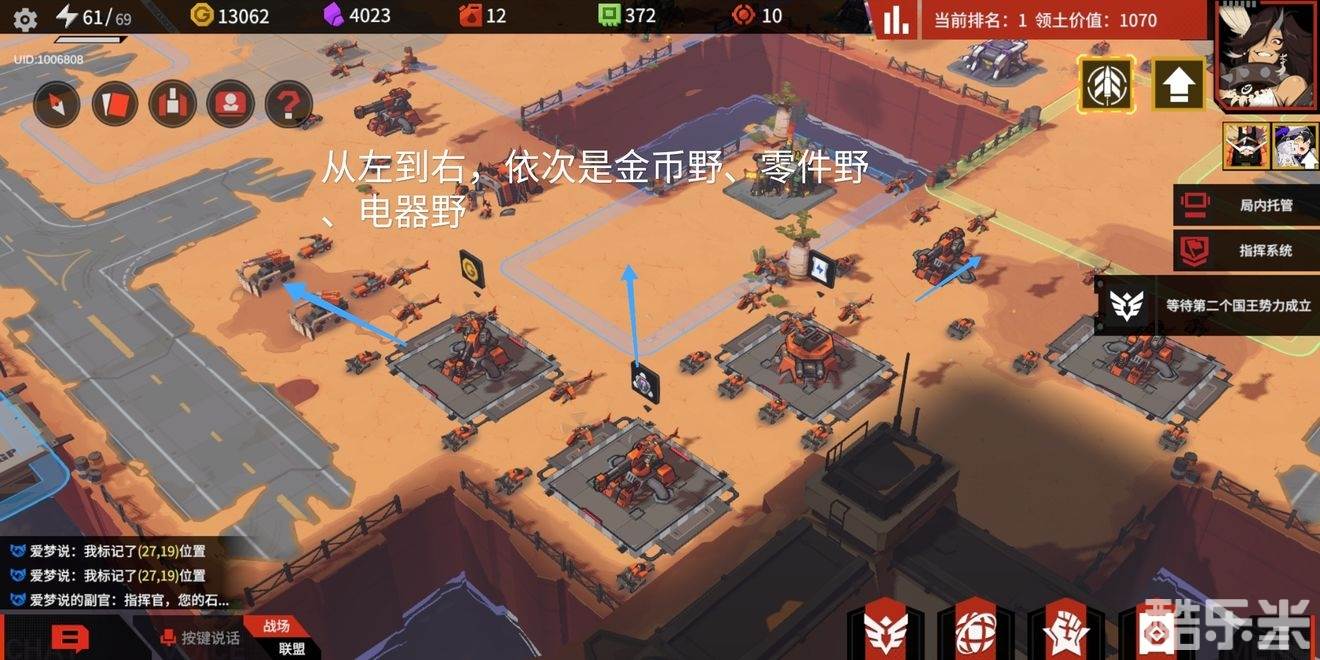 注意点③观察一下第一平台的其他三位玩家,等待其申请结盟(获得50暗钢),或是自己主动发起结盟(花费100暗钢)。虽然你可以随时解盟,但是一定注意,全局只能有一个小队队友,你可以进队友大本营区域,可以在队友的地块建造,非队友哪怕是在同一个王国势力,以上操作也不行。所以,一定要选好队友。