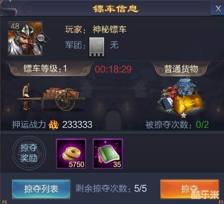 玩家可以掠夺其他玩家货物,若镖车未被成功掠夺,则运送结束时将获得额外奖励。每辆镖车可以被掠夺2次,每个玩家每日总共可以掠夺5次,可额外购买掠夺次数。