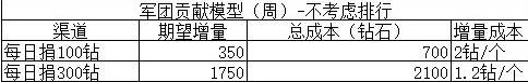 如上图可见,在每天捐300钻的情况下,氪金图纸(苍狼、创世等)钻石价值为600钻/张