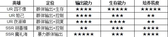 总结:本团队2个UR英雄,2个SSR英雄 1个系统送的UR5星英雄,另外其中1个SSR英雄也是任务活动赠送可以到满星的,所以培养成本非常低,效果会非常好,并且在公测后也肯定是玩家喜欢的阵容,因为暴力简单直接。