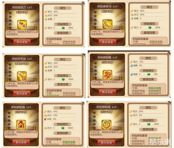 赤炎套全套装备包括头盔(不建议出)、鞋子(15%武力加成)、戒指(和传说铭文初始一样)、铠甲(比鬼面浩神甲武力高5%,同时加5%抗性)和武器,武器的话用干将或者赤炎武器。目前来看,穿云冠的暴击作用无可替代,所以建议可以搞2件套、3件套或者4件套。