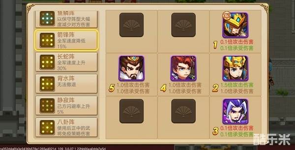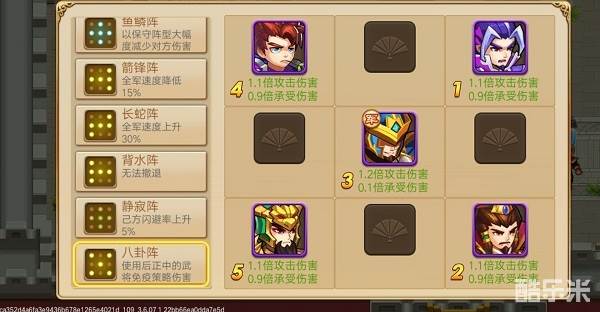 武将方面的搭配前期无鬼面有一星曹仁配合法正其他可以上乐进(体力消耗可获得一星足矣)阵容:八卦阵最佳,法正开智盾哪个破了就给哪个上免击免策勉强可过99。
