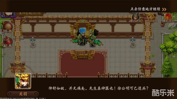 打完徐晃回城,查看关羽治疗状况,然后东吴陆逊来访。