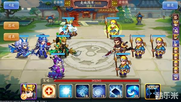 此战吕蒙军也换阵换小兵(小兵会使用策略),同样控制吕蒙,快速清除小兵,但要保证结束时候保护型(例如法正智盾)或控制型(例如姜维麒麟术)武将技能冷却回合尽量转好,因为接着就要进入下一场战斗,这样就有一个好的开局(当然如果武将都超过4星,可以开场技能无冷却另当别论)。