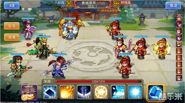 敌方使用的双龙阵(属性未知),小兵也会使用策略,同样按我说的方法留好技能的话,开场群控技能的武将(像姜维啊,徐晃等)群控,最快速度清理完小怪(诸葛连弩和修罗会心药使劲了砸),之后控制千万不要断,然后边控边输出,直到杀完为止。这场战斗为剧情的最难点,实在打不过去就放弃吧,硬件提高之后再来吧。