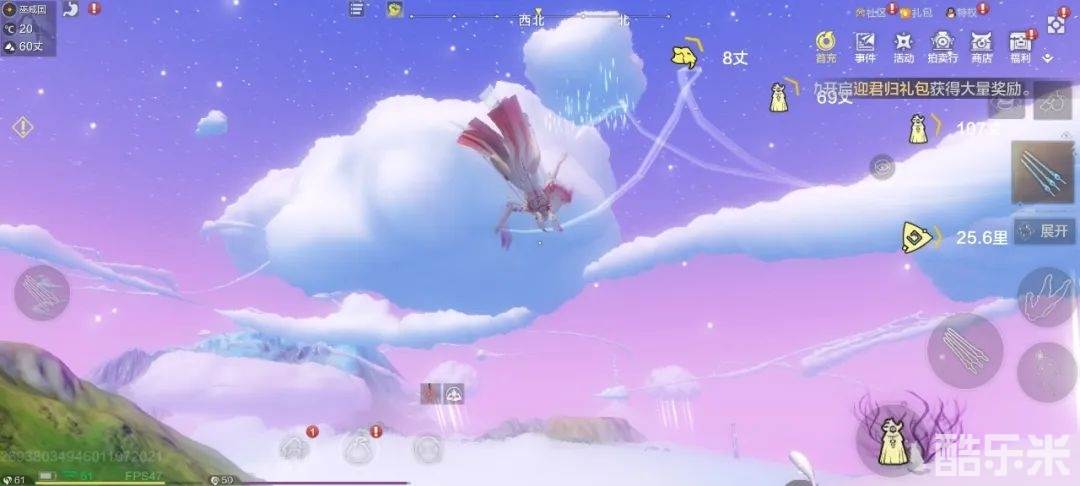 既然是云,不能钻还有什么意思?海西云宫纵横交错,随机刷新在天空中的云朵上。据说云宫有一个外形特征,就是上面会有一个小彩虹~ 靠近这类云后,找到云上发光的入口就可以开始探索云朵内部啦!妄妄听说这里是刷修复石的好地方哦~