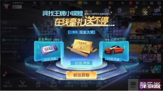 不仅有现金福利,更有超2000份王牌小锦鲤福利即将开始派送!7月22日起至7月25日,每晚在线就能自动参与锦鲤抽奖,20时、21时和22时将分别抽取不同奖项,1111元现金大礼、迈凯伦720S永久赛车和盲盒券*10等你领回家!