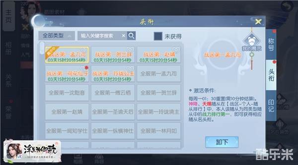 《浮生为卿歌》手游全新头衔系统也已火热上线,宠物排行、皇子-战力排行、厨艺排行、家园繁荣排行,将与头衔系统同步上线。系统会在每周一01:30进行结算重置,将根据各大战区、跨服排行榜上的排名,给予符合条件的玩家发放头衔。阁下可在名片处、聊天气泡拖尾、场景内人物头顶进行展示;值得注意的是,头衔也拥有品质区别,佩戴高品质头衔是实力的象征,相信定会令阁下的回头率大大增加。