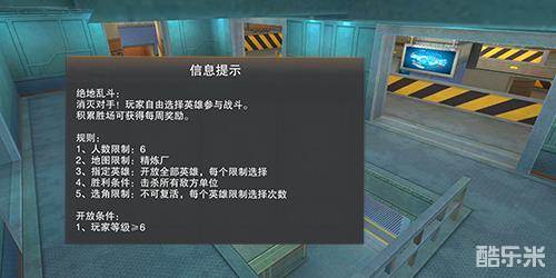 3V3新玩法——绝地乱斗:玩家分为双方阵营,两支由3名玩家组成的队伍同场竞技,死亡期间无法复活,击杀对方阵营所有英雄即可获得胜利。开放全部英雄,但每个英雄限制选择次数,获胜方所使用的英雄将在下一回合被锁定。