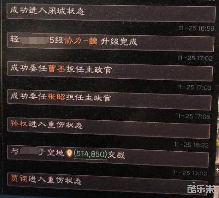 该玩家在系统消息的提示下于16点59分成功进入闭城状态,而在18点32分时,该玩家的孙权、贾诩等部队纷纷在系统消息提示下进入重伤状态。而在16点59分进入闭城状态再到18点32分被敌人部队穿通这段时间,玩家并没有主动取消闭城,系统消息也没有取消闭城状态的提示。