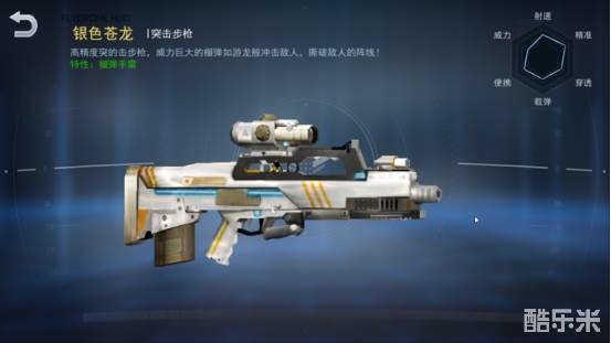 接着是银色苍龙,较高的颜值,并且各方面能力均衡,其精准度最为突出,但是其伤害可不能小觑,拥有榴弹手雷特性,也具备十足的杀伤力。