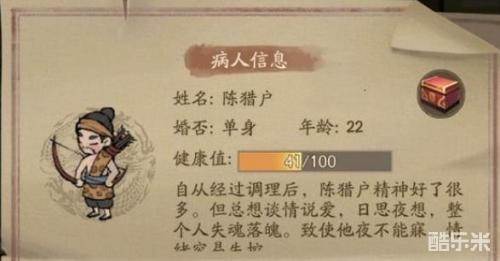 叫我大掌柜游戏中玩家需要治疗一些病人,其中治疗失眠的陈猎户需要的药方是什么,相信很多玩家还不太了解吧!接下来就让小编给大家带来《叫我大掌柜》失眠的陈猎户药方配方介绍,感兴趣的小伙伴们一起来看看吧。