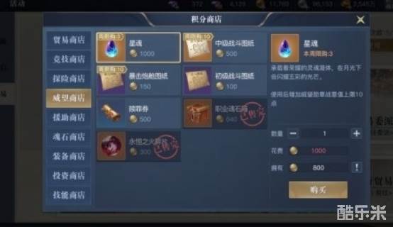 威望商店:以威望徽章为主要货币的商店,可以在此购买战斗船舱图纸、星魂、魂石、命运石碎片等。威望徽章可通过沉船海湾争夺战、提升威望等级获得。