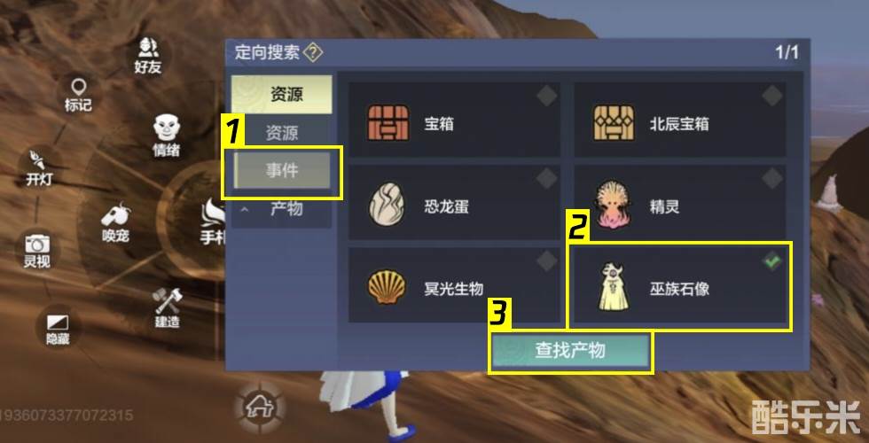 点击轮盘-搜索-定向搜索-事件-巫族石像,搜寻巫族石像。