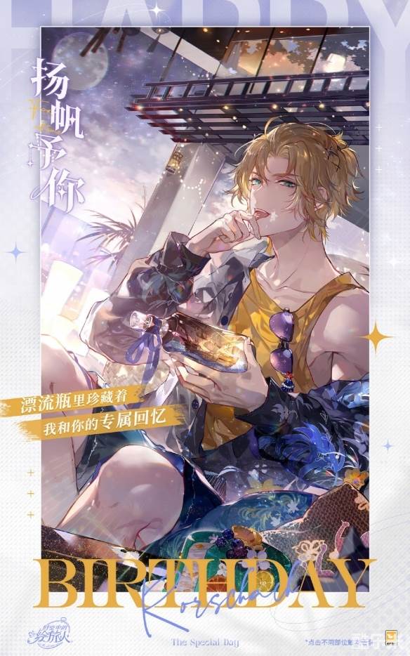 ►罗夏生日复刻活动开启后,拥有罗夏生日画灵【扬帆予你】可以制作礼物触发生日剧情。如未获得罗夏·【扬帆予你】,可以通过【钻石】*1200兑换。