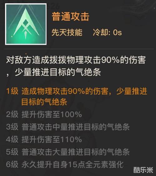 2、土也的普攻技能可以推进暗属性目标的气绝条,土也的普攻可以选择尽量升级到五级,可以极大的推进暗元素目标的气绝条,而副本的怪也都是暗元素,所以选择土也也是挺好的。