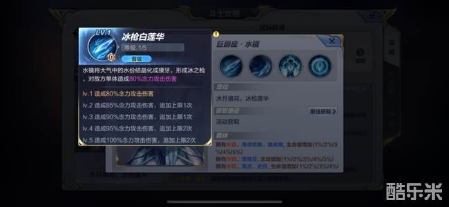每损失20%生命值,释放冰枪白莲华后,可以无消耗再释放一次,若目标已经死亡则随机攻击存活敌人。