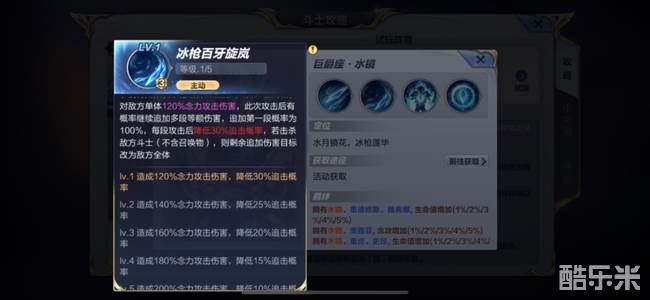 每损失40%生命值,释放冰枪百牙旋岚后,可以无消耗再释放一次,若目标已死亡则随机攻击存活敌人。