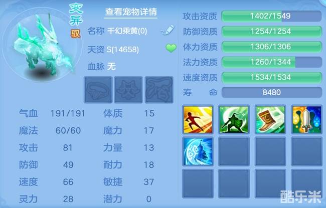 这种爆炸资质我自己来点评就好了,速资1612,攻资1574,都不用使用元宵,成长又是红心,非常适合走耐攻,满意满意。