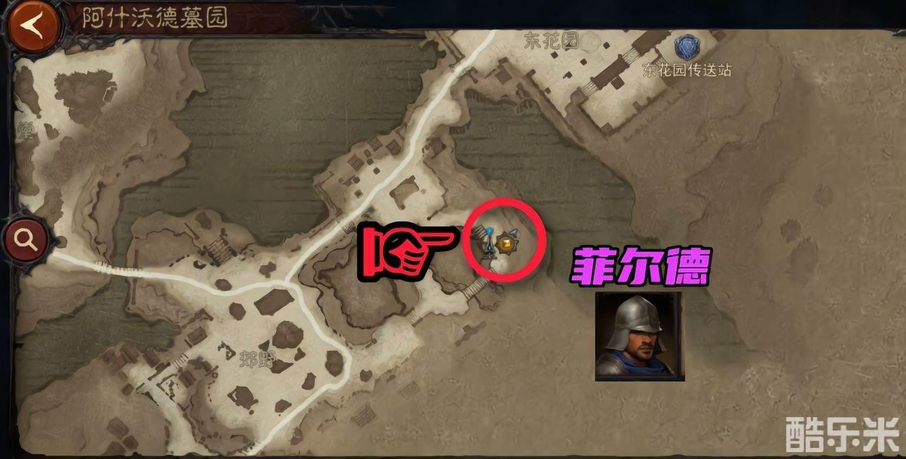 1、菲尔德位置位于郊野旁区域右下角如下方图红圈位置。