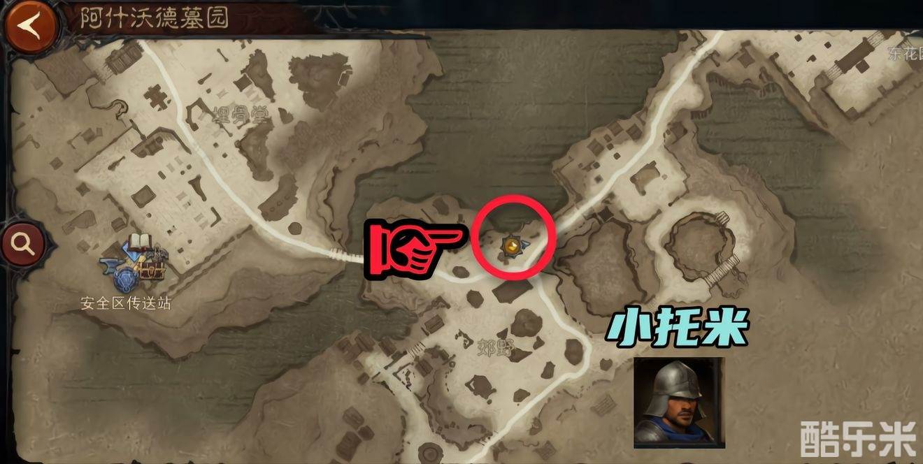 2、小托米位于郊野正中间上方如下方图红色圈位置。