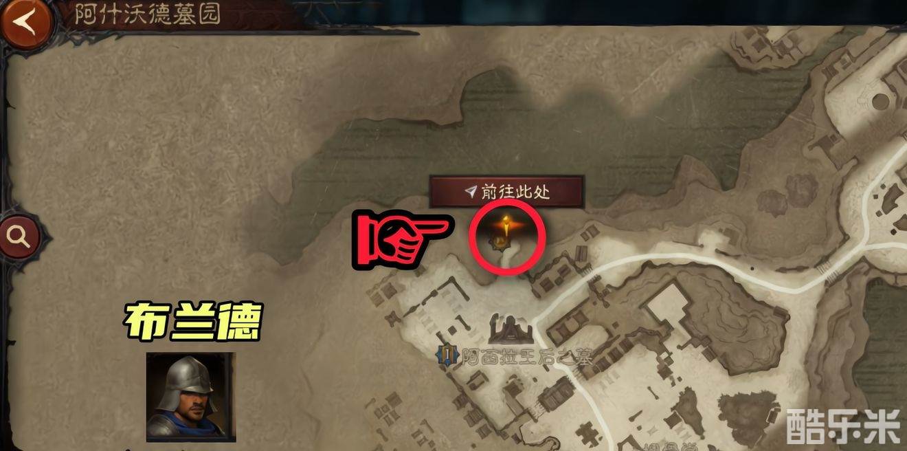 3、布兰德位于阿西拉王后之墓正中间上方位置如下方图红色圈位置。