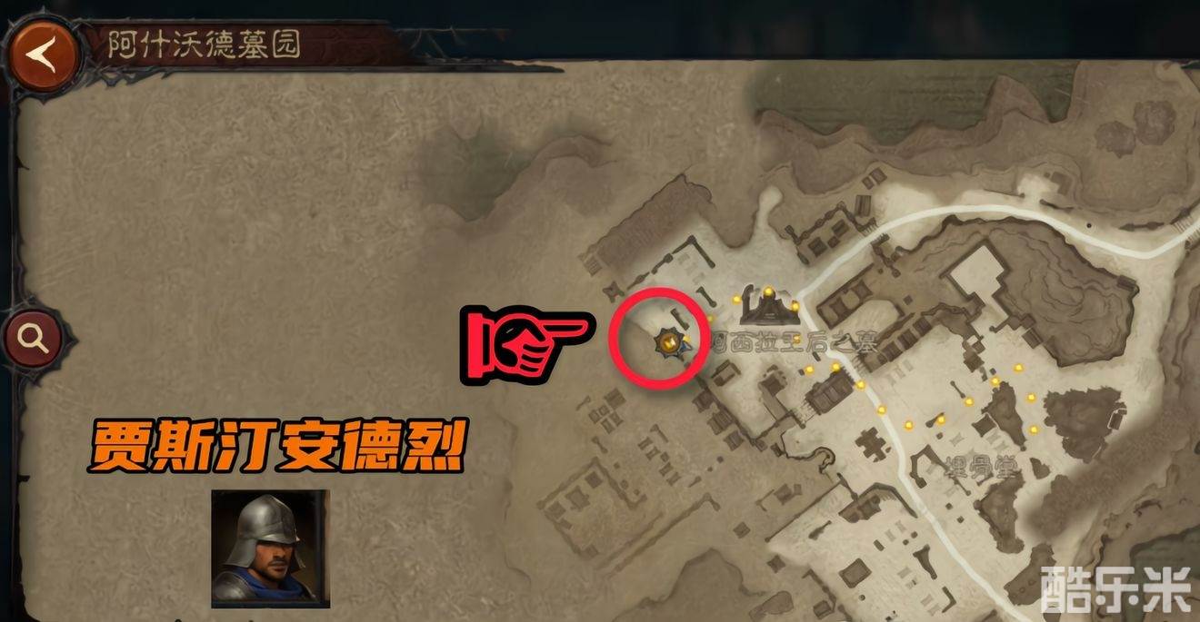 5、贾斯汀安德烈位于阿西拉王后之墓左侧位置如下方红色圈位置。