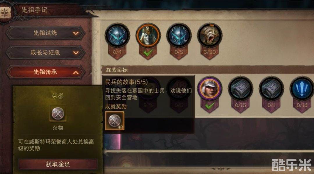 完成本次探索任务可以获得成就奖励40枚荣誉徽章可在威斯特玛荣誉商人处兑换高级的奖励。