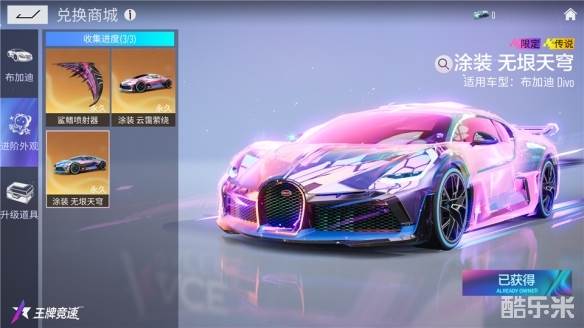 使用租车券兑换布加迪Divo-无垠天穹涂装