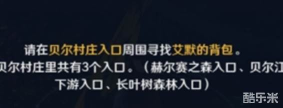 为了解决问题,冒险家需要先在贝尔村庄入口处,寻找艾默的背包。